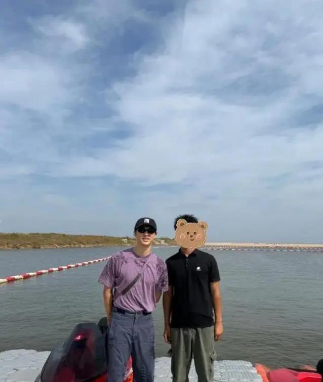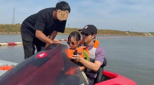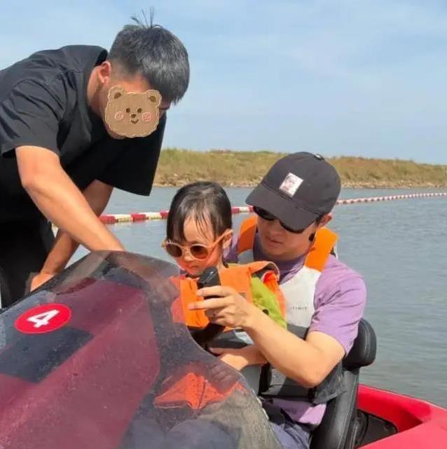 网友拍到尹昉当天穿着紫色T恤和牛仔裤,戴着帽子和墨镜,179cm的身高又瘦又挺,状态好得完全不像39岁。女儿小蹈坐在他怀里,乖巧地戴着太阳镜,扎着马尾辫,跟爸爸长得像一个模子刻出来的。父女俩一起开卡丁船,尹昉满脸温柔,耐心陪着女儿,网友看了都忍不住点赞。